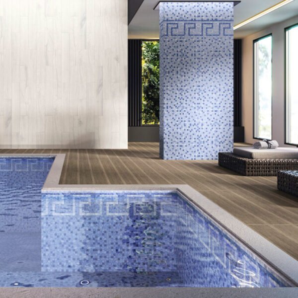 - Tecnología Antibacteriana: Integrada en el material, esta característica inhibe activamente el crecimiento y la proliferación de bacterias en la superficie del azulejo. En ambientes húmedos como las piscinas, donde los microorganismos pueden desarrollarse fácilmente, esta propiedad es fundamental para mantener un entorno más saludable y seguro.