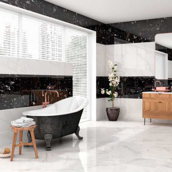 La serie Calacatta se caracteriza por su diseño que reproduce las vetas distintivas del mármol Calacatta sobre fondos de color contrastantes, creando ambientes elegantes y con carácter. El acabado brillo intensifica la luz y el brillo de las baldosas, aportando un toque de amplitud visual. El formato de 30×60 porcelánico ofrece una opción cálida y estilosa para suelos interiores.