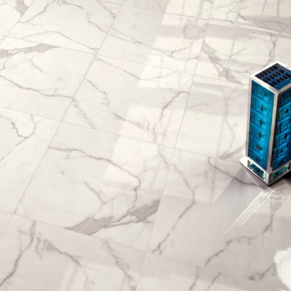 La serie Gold Calacatta y Moncalieri se caracteriza por su diseño que reproduce las vetas y tonalidades del mármol, creando ambientes elegantes y luminosos. El acabado brillo intensifica la luz y el brillo de las baldosas, aportando un toque de amplitud visual. La colección se presenta en dos formatos rectificados: 60×60 y 60×120, lo que permite una colocación versátil y una estética moderna y limpia.