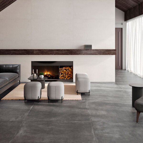 Los modelos Antracita, Blanco, Crema y Gris presentan una paleta de colores inspirados en el cemento y otros materiales urbanos, aportando un toque moderno y elegante a los espacios. El acabado mate de estas baldosas crea una superficie suave y sin brillos, mientras que el gran formato 120×120 potencia la sensación de amplitud y continuidad.