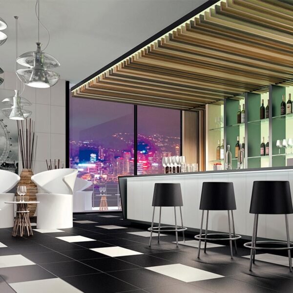 La serie Cosmic del fabricante Keracom ofrece baldosas porcelánicas rectificadas de gran formato (30×60) con acabado mate y antideslizante (C1), en los clásicos colores blanco y negro, ideales para crear espacios modernos y seguros con un estilo minimalista.