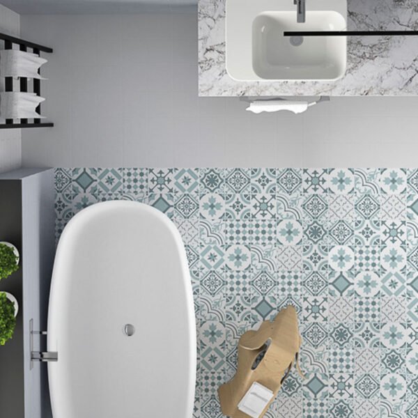 La serie Gregal del fabricante Pissano ofrece baldosas porcelánicas en formato 15×15 con una variedad de diseños decorativos de inspiración hidráulica, ideales para añadir un toque vintage y distintivo a tus espacios.