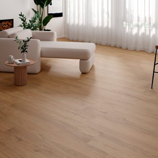 La serie Westlake de Alaplana combina tecnología cerámica avanzada con el diseño natural de la madera. Gracias al sistema STRUCTECH, cada pieza presenta un relieve sincronizado que acompaña visualmente el dibujo de la veta, generando una superficie hiperrealista. Este porcelánico rectificado de gran formato es ideal para crear ambientes cálidos, elegantes y resistentes.
