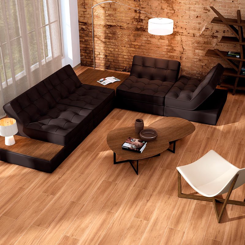 Los suelos porcelánicos imitación madera son perfectos para crear ambientes cálidos y acogedores en el hogar. Son antideslizantes, fáciles de limpiar y resistentes a la humedad, lo que los convierte en una excelente opción para cocinas y baños.