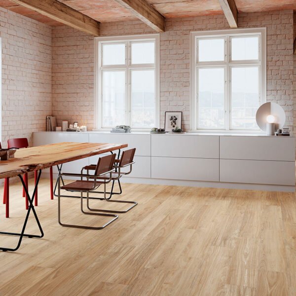 La serie Colton se caracteriza por su diseño que imita fielmente las vetas, nudos y tonalidades de la madera, creando ambientes cálidos y acogedores. La superficie antideslizante (Slipstop) proporciona seguridad adicional, especialmente en áreas donde el suelo puede estar húmedo. La colección se presenta en dos formatos: 15×90 y 23×120, lo que permite una colocación versátil y una estética moderna y limpia.
