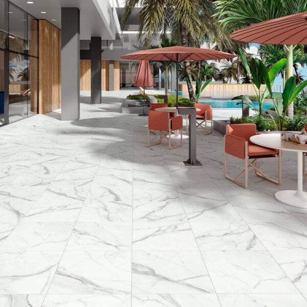 - Porcelánico Rectificado Pulido (60×120, 120×120): Ideal para suelos interiores, proporcionando una superficie brillante y reflectante para un toque de lujo y amplitud.
