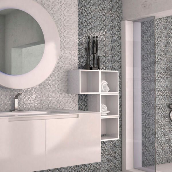 Esta serie es perfecta para baños, cocinas, o cualquier espacio que busque un revestimiento de pared con el encanto del gresite y un toque de brillo.